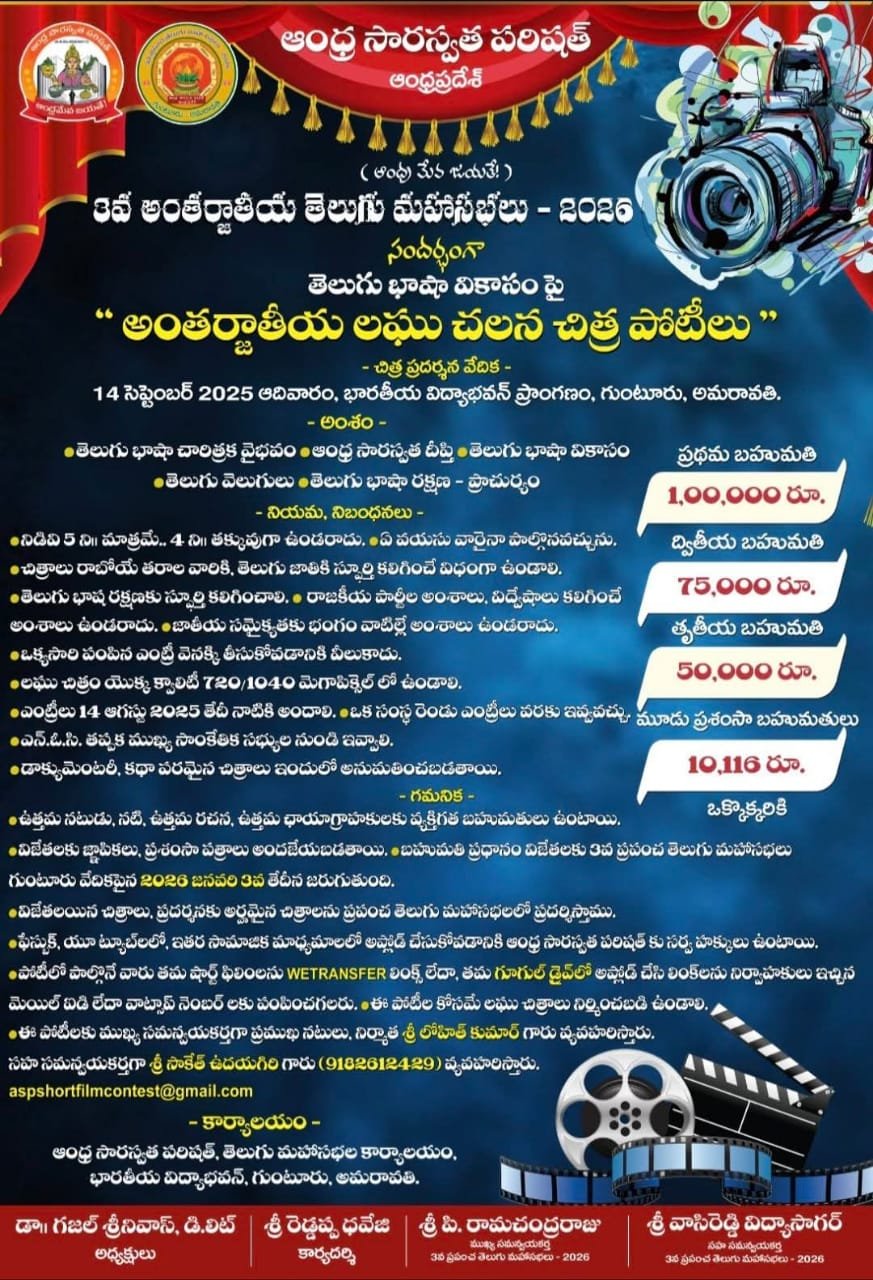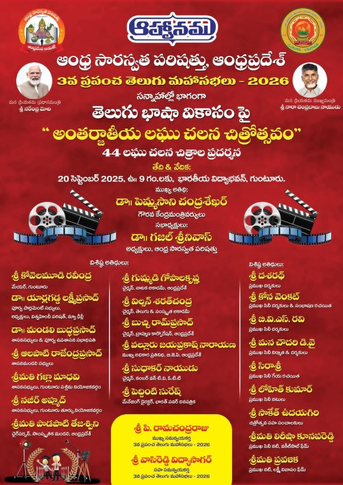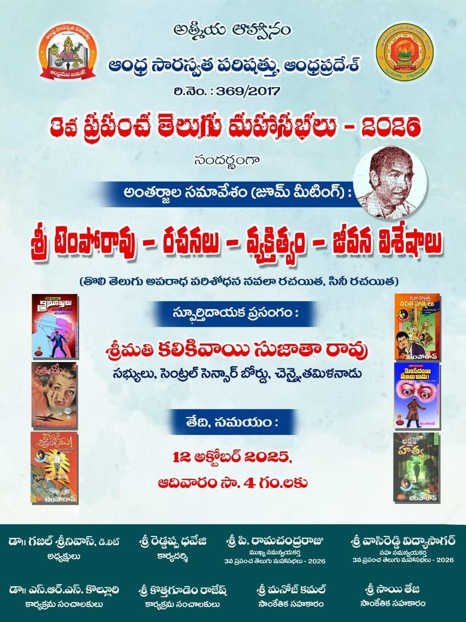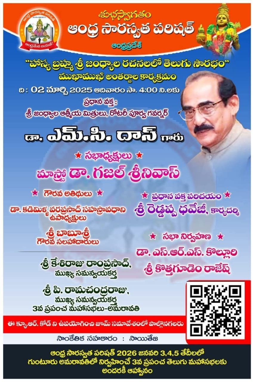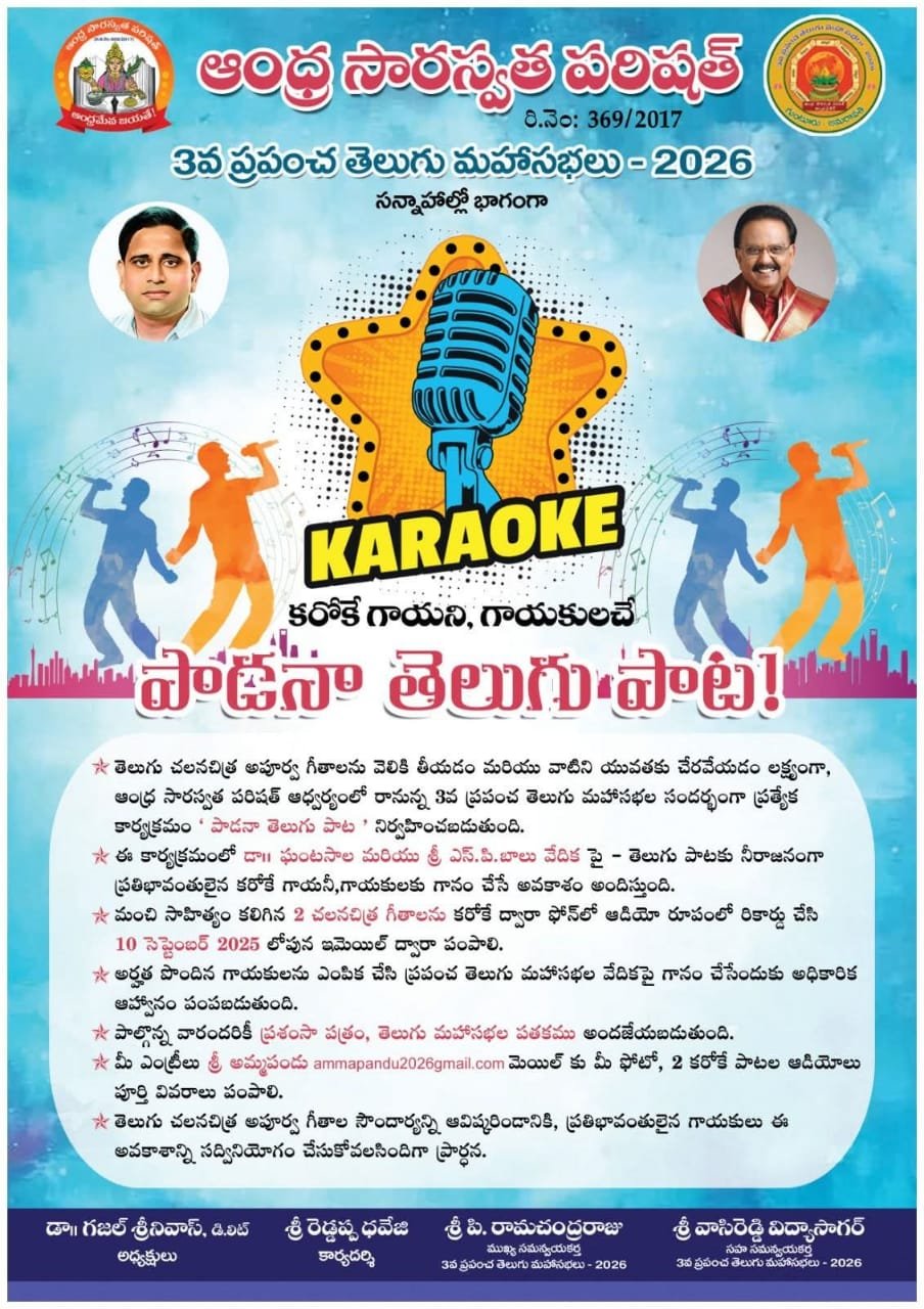 ప్రపంచ ప్రఖ్యాత గజల్ గాయకులు 3 సార్లు గిన్నిస్ బుక్ ఆఫ్ వరల్డ్ రికార్డ్ గ్రహీత, పెద్దలు, గౌరవ శ్రీ శ్రీ శ్రీ గజల్ శ్రీనివాస్ గారు అధ్యక్షతన జరుగుచున్న, 3వ ప్రపంచ తెలుగు...