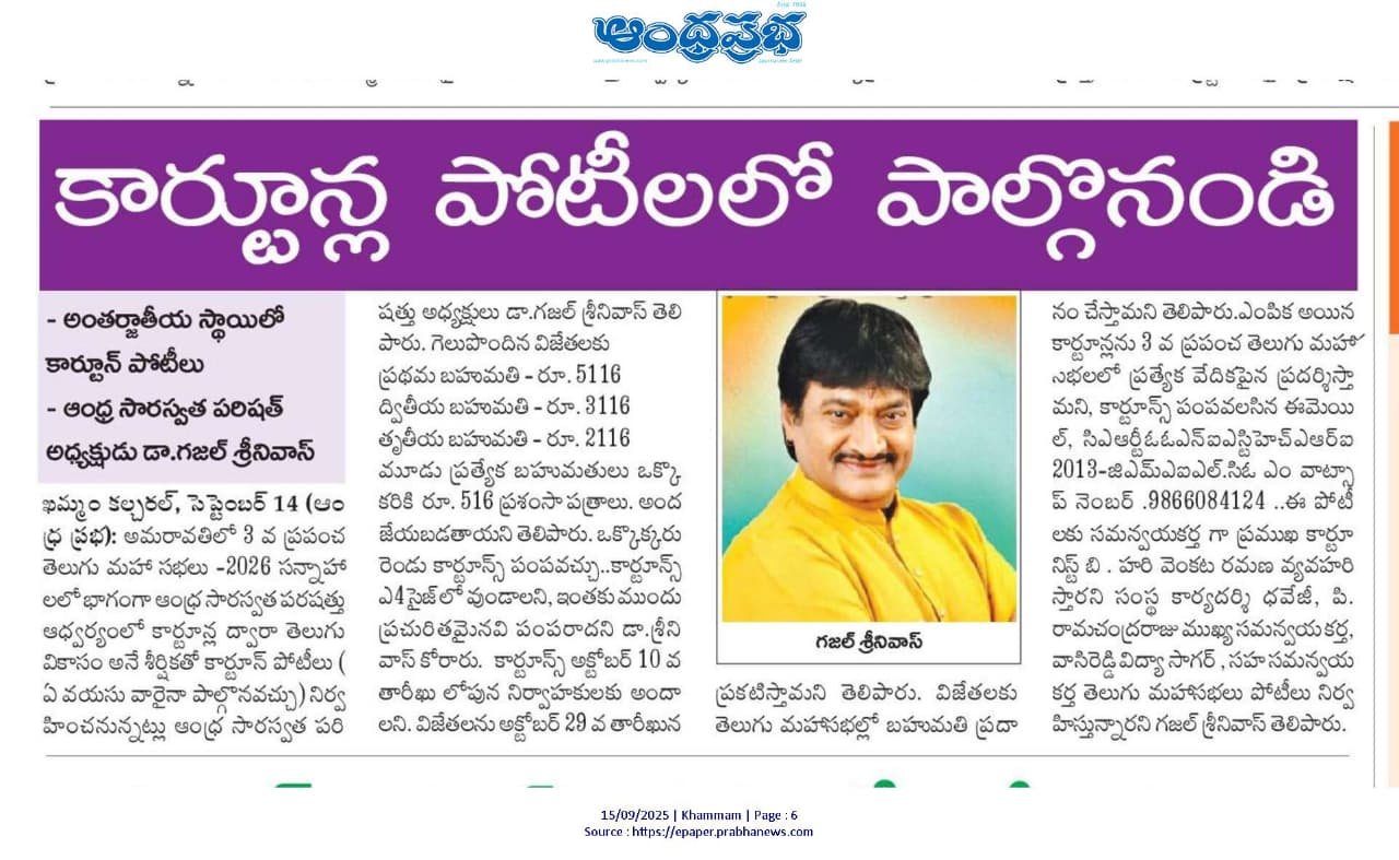 • నమోదు చేసుకొని , పాల్గొన్న వారికి అభినందన పత్రము ఇవ్వబడును.